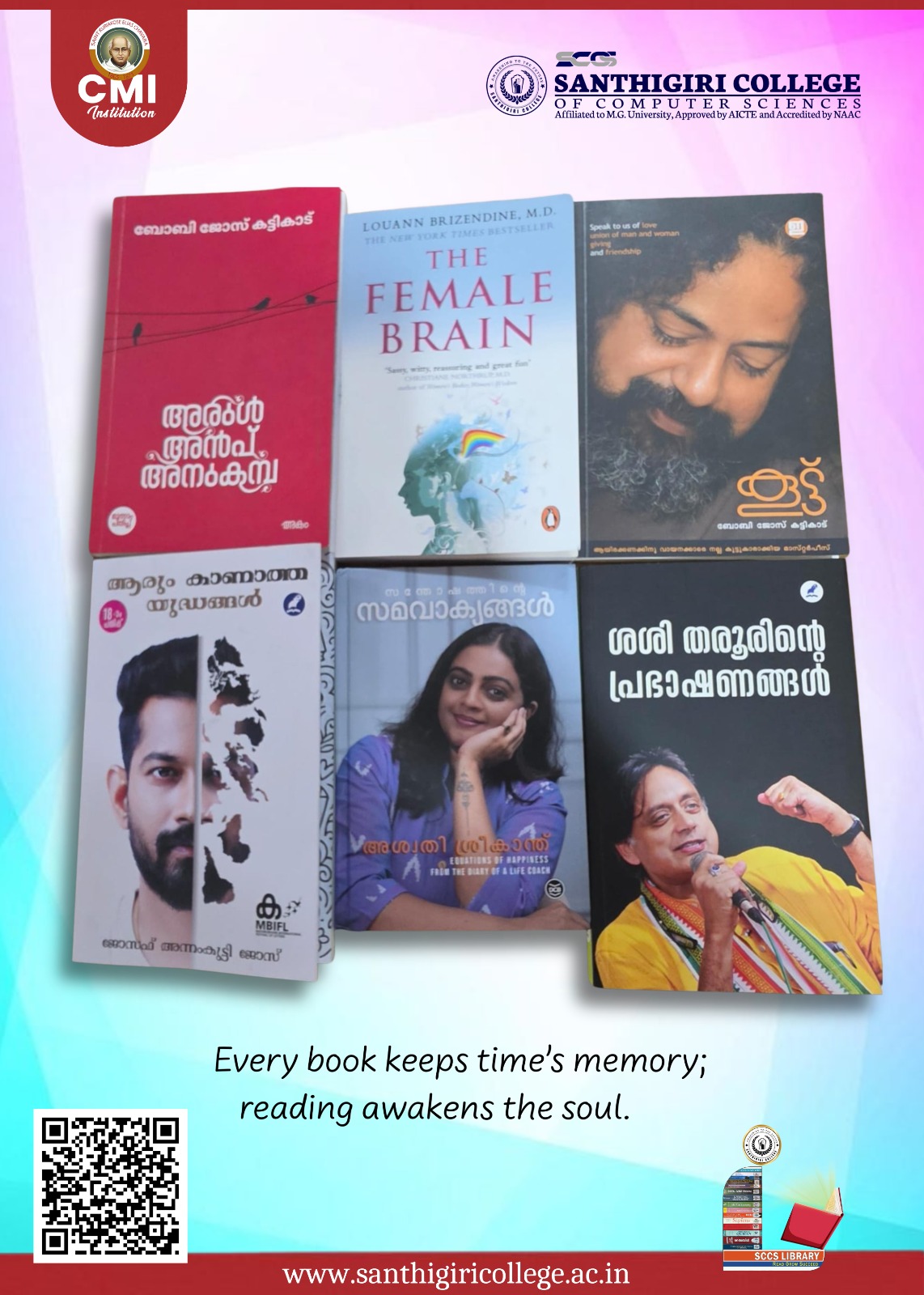 The Library plays a vital role in promoting Teaching, Learning and Research particularly to the academic communities. The academic programmes of the college are well supported by the Library. The library’s role includes Identification, Evaluation, Procurement, Processing and making these learning resources available to the students and faculty members. The location of Santhigiri College Library is ideal ie, at ground floor in the main campus, with total area of 1200 sq.m., spacious with a total seating capacity of 102 and with 9702 print books, including reference books, journals, periodicals, and newspapers so that it provides easy access to the students and staff members.