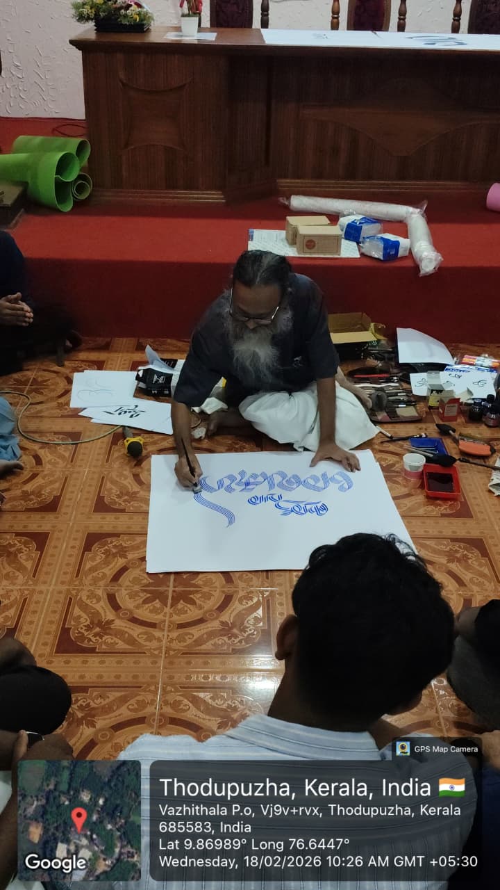 The Department of Animation and Graphic Design at Santhigiri College of Computer Sciences organized a Calligraphy Workshop on 18th February 2026. The session was conducted by renowned calligraphy artist Narayana Bhattathiri.